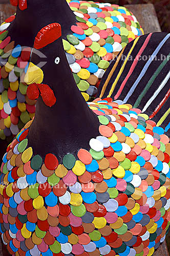 Subject: Craftwork - Colorful chickens / Place: Ipojuca city - Brazil