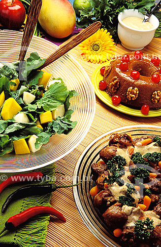 Subject: Cookery - chicken with salada and pudding / Place: Brazil