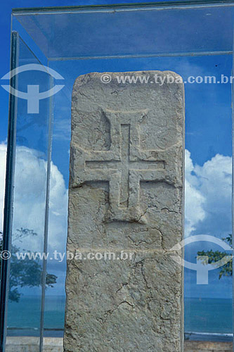 Subject: Marco Padrão (1503), Portuguese Crown Ownership Mark, with the Malta Cross sculpted in stone - *Historical Center of Porto Seguro* - south coast of Bahia state - Brazil * The Costa do Descobrimento (Discovery Coast site, Atlantic Forest Reserve) i