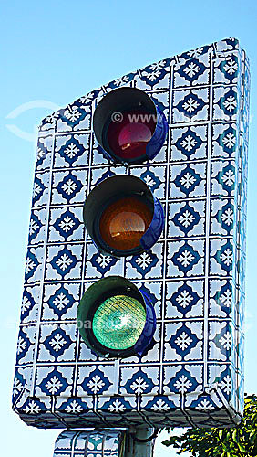 Subject: Traffic light replicating portuguese tile - Sao Luis city - Maranhao state - Brazil - June 2007