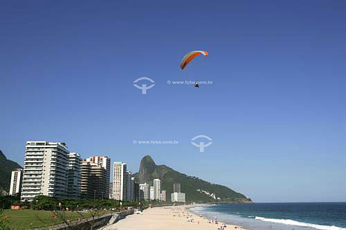Subject: Parachuting at Sao Conrado beach / Place: Rio de Janeiro city - Rio de Janeiro state (RJ) - Brazil