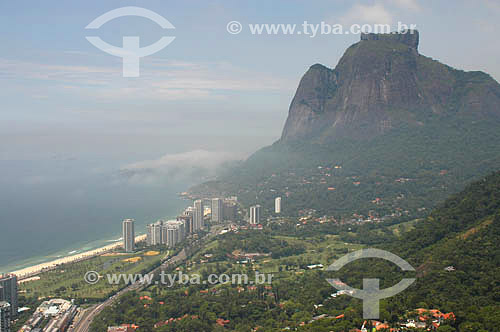 Subject: Aerial view of Sao Conrado Beach with Gavea Rock in the background - Rio de Janeiro city - Rio de Janeiro state - Brazil