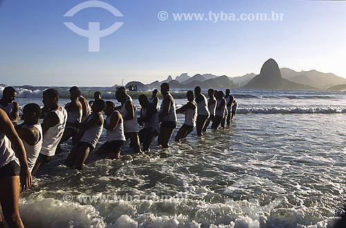 Subject: Men trying to rescue whale at Guanabara Bay - Niteroi city - Rio de Janeiro state - Brazil