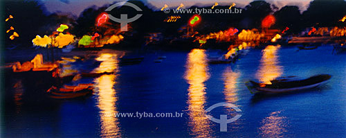 Subject: Fishermen boats and lights of Buzios city by night - Costa do Sol (Sun Coast) - Regiao dos Lagos (Lakes Region) - Rio de Janeiro state - Brazil