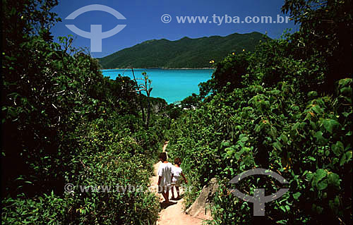 Subject: An access trail leading to Praia do Pontal do Atalaia (Atalaia Point Beach) - Arraial do Cabo city - Costa do Sol (Sun Coast) - Regiao dos Lagos (Lakes Region) - Rio de Janeiro state - Brazil