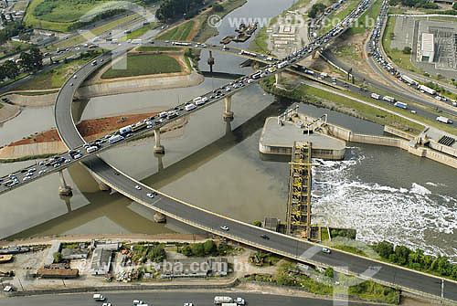 Subject: Aerial view of viaduct over Pinheiros river - Sao Paulo city - Sao Paulo state - Brazil