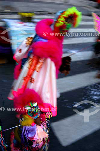 Subject: Reveller dressed up in clovis costume (typical character of the street carnival of Rio de Janeiro) for the Carnival street party - "Cordão do Bola Preta" carnival troupe - Rio de Janeiro city downtown - Carnival 2005 - Rio de Janeiro state - Brazil