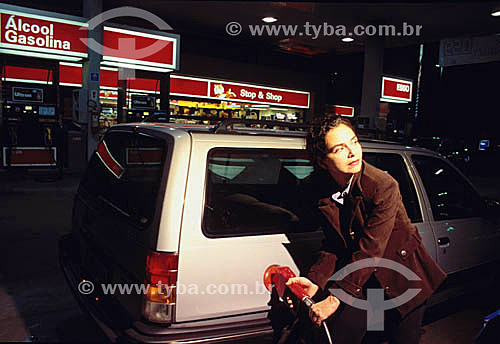 Subject: Woman putting gas in the tank 2000