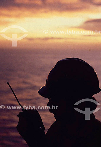 Subject: Silhouette of worker at a petroleum platform - Brazil