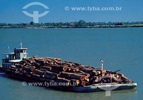 Subject: Wood transport - Paranagua River - Sao Paulo state - Brazil