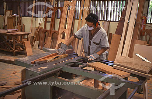 Subject: Worker manufacturing furniture out of wood certified as originating from the Amazonia forest region - Brazil
