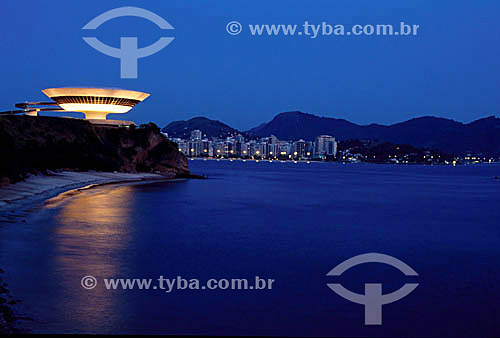 Subject: Contemporary Art Museum (MAC) at night - Niteroi - Rio de Janeiro state - Brazil