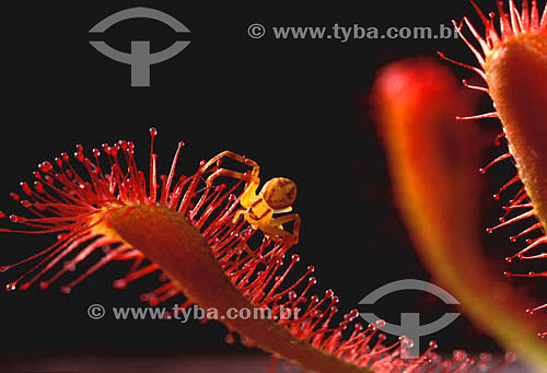Subject: (Drosera rotundifolia) Round-Leafed Sundew - carnivorous plant with a spider