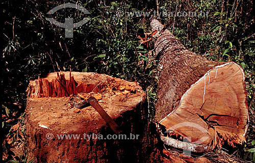 Subject: Deforestation - Man with a chainsaw cutting a tree - Amazonian Forest / Place: Brazil