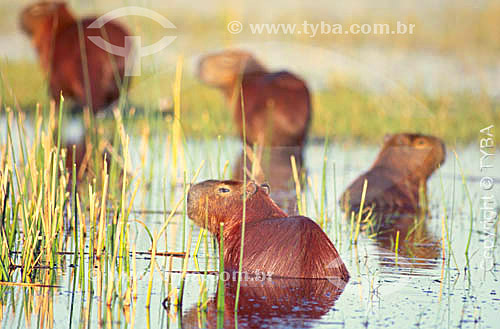 Subject: (Hydrochoerus hydrochoeris) Capybaras at the Taim Ecological station - Rio Grande do Sul state - Brazil