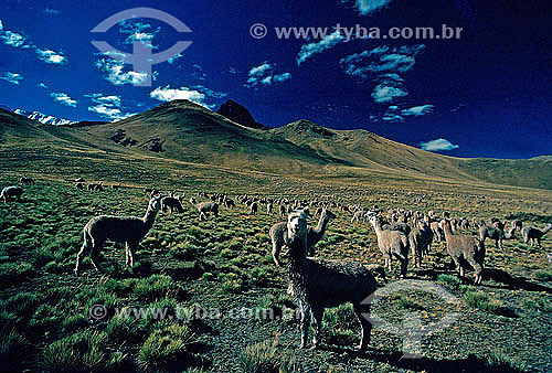 [+] South America, [+] Peru, [+] landscape, [+] fauna, [+] vegetation, [+] nature, [+] field, [+] grass, [+] grassland, [+] Alpaca, [+] ruminant, [+] wild animal, [+] wildlife, [+] wild, [+] wild life, [+] other countries, [+] foreign land, [+] rural landscape