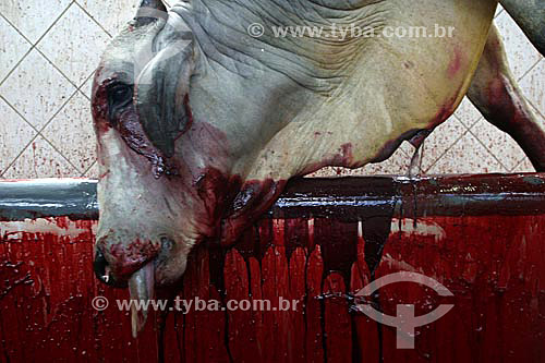 Subject: Dead ox in a slaughterhouse