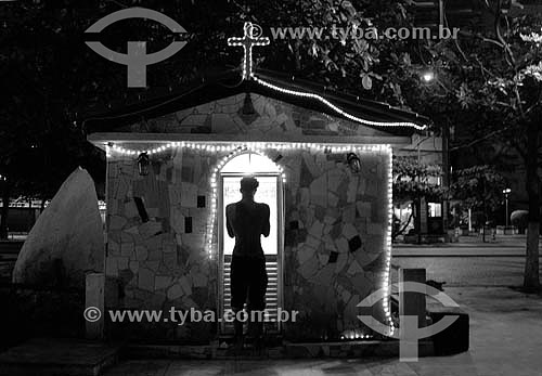 Subject: Silhouette of a man in the Copacabana Oratory - Rio de Janeiro city - Rio de Janeiro state - Brazil