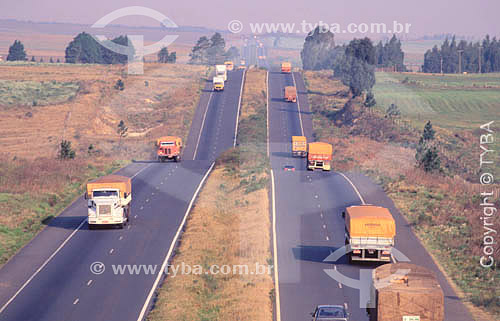 Subject: Road - Transport - Trucks at a highway in south Brazil