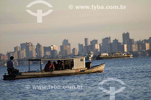Suject: Boat in Guajara Bay with Belem city in the background / Location: Belem City - Para State - Brazil / Date: 07/18/2008