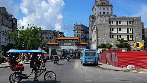 Subject: Tricycles with the entrance of the Japanese community in Havana / Local: Havana - Cuba / Date: october 2009