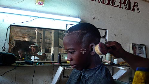 Subject: Boy cutting hair in barber shop / Local: Havana - Cuba / Date: october 2009
