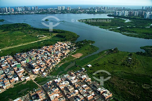 Subject: Aerial view of Favela do Rio das Pedras with the Tijuca Lagoon in the background / Place: Barra da Tijuca - Rio de Janeiro city - Rio de Janeiro state - Brazil / Date: October 2009