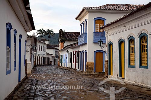 Subject: Colonial houses of Paraty, in a street with the stone pavement known as "pe-de-moleque" / Place: Paraty city - Costa Verde (Green Coast) region - Rio de Janeiro state - Brazil / Date: Janeiro 2010