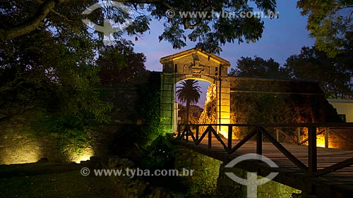Subject: Portón de Campo (the City Gate), the main landmark of the city. It was rebuilt between 1968 and 1971 by the ruins of the old wall and wooden drawbridge / Place: Colonia do Sacramento city - Uruguay
