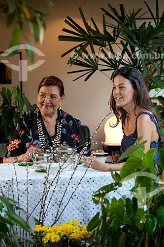 [+] coffee break, [+] elderly, [+] elder, [+] generation, [+] grandmother, [+] grandson, [+] home, [+] house, [+] meal, [+] old woman, [+] tea, [+] tea time, [+] young people, [+] Brazil, [+] family, [+] habitation, [+] people, [+] person