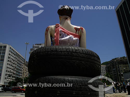 Subject: Manifestation against violence at Copacabana Beach, organized by Rio de Paz (Peace in Rio - NGO). Mannequin inside a pile of tire represent thousands of people that are vanished in Rio de Janeiro / Place: Rio de Janeiro city - Brazil