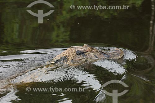 Subject: Black caiman (melanosuchus niger) in the Mamiraua lake, next to the Uacari lodge, in the Mamiraua Sustainable Development Reserve (RDS) / Place: Amazonas state - Brazil / Date: 03/2007