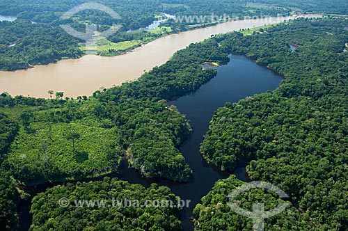 Subject: Aerial view of the Madeirinha river, and lowland lakes with different colors of water / Place: Northeast of the Borba municipality - Amazonas state - Brazil / Date: 11/2007