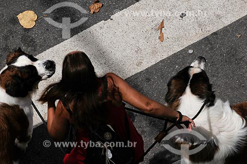 Subject: Woman walking dogs of the Saint Bernards breed / Place: Copacabana - Rio de Janeiro city - Rio de Janeiro state - Brazil / Date: 01/2009
