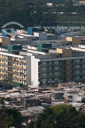 Subject: Habitational complex - Alexandre Mackenzie condominium and a part of the Nova Jaguare slum in front of it / Place: Jaguare neighborhood - Sao Paulo city - Sao Paulo state - Brazil / Date: 06/10/2010