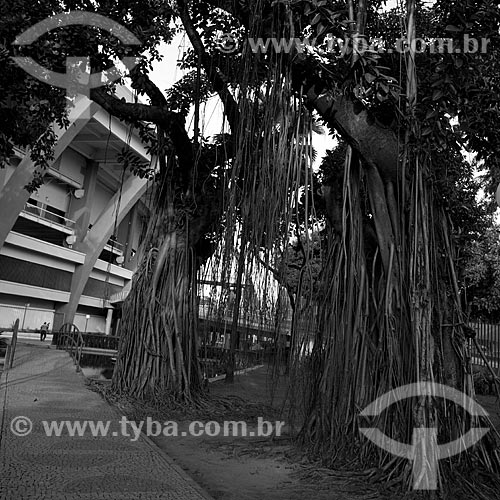[+] Brazil, [+] facade, [+] Jornalista Mario Filho stadium, [+] Maracana, [+] Rio de Janeiro, [+] soccer, [+] soccer stadium, [+] Southeast, [+] Southeast Region, [+] sport, [+] tree, [+] stadium