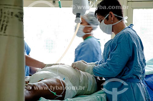 Subject: Federal Hospital of Andarai - Center for treatment of burning injuries - Patient receives healing after balneotherapy / Place: Andaraí - Rio de Janeiro city - Brazil / Date: 10/2010