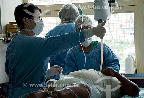 Subject: Federal Hospital of Andarai - Center for treatment of burning injuries - Patient receives healing after balneotherapy / Place: Andaraí - Rio de Janeiro city - Brazil / Date: 10/2010