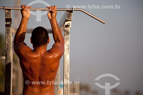 Subject: Man practicing physical exercises in the beach / Place: Ipanema - Rio de Janeiro city - Brazil