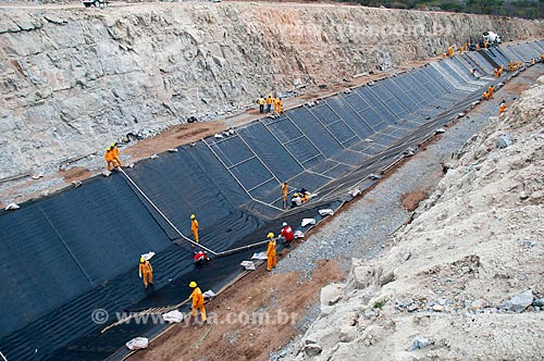 Subject: Men working in irrigation channel - Project for Integration of the Sao Francisco River with the watersheds of the Septentrional Northeast / Place: Sertania city - Pernambuco state (PE) - Brazil / Date: 08/2010