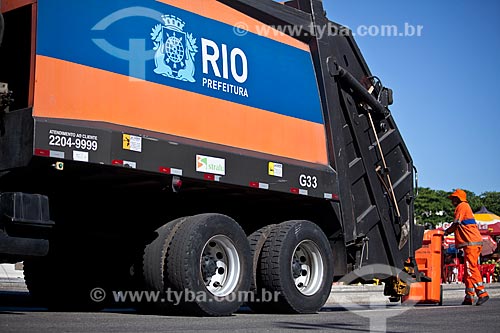Subject: Garbage collection truck on Copacabana Beach / Place: Copacabana Neighborhood - Rio de Janeiro city - Rio de Janeiro state (RJ) - Brazil / Date: 02/2011