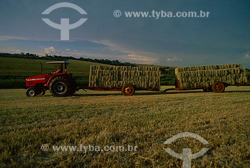 [+] agribusiness, [+] agriculture, [+] bale, [+] harvest, [+] hay, [+] machine, [+] plantation, [+] Southeast Region, [+] tillage, [+] tractor, [+] transport