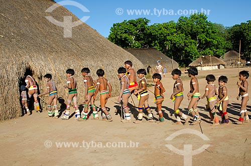 Subject: Childrens Kalapalo in Aiha Village if preparing for Jawari / Place: Querencia city - Mato Grosso state (MT) - Brazil / Date: 07/2011