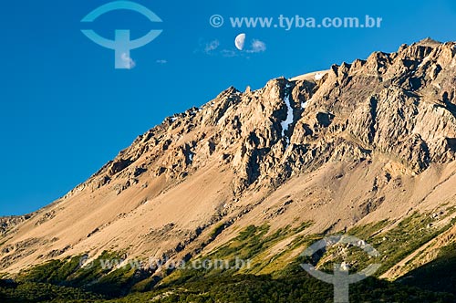 Subject: Los Glaciares National Park - Just before sunset with the moon appearing over the mountain near the city of El Chalten. / Place: Santa Cruz Province - Argentina - South America / Date: 02/2010