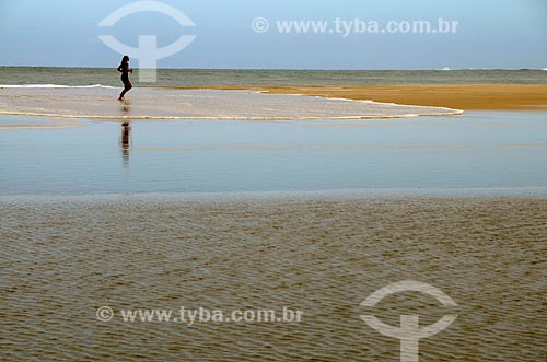 Subject: Woman running on Copacabana beach near the undertow of the sea / Place: Copacabana neighborhood - Rio de Janeiro city - Rio de Janeiro state (RJ) - Brazil / Date: 05/2011