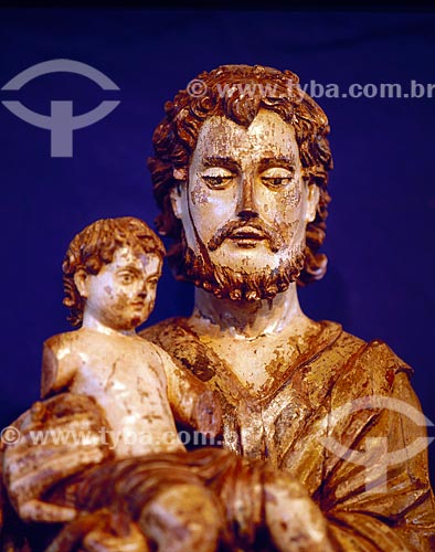 Subject: Wood sculpture of male figure and child of the Missions Museum / Place: Sao Miguel das Missoes city - Rio Grande do Sul state (RS) - Brazil / Date: 01/2006