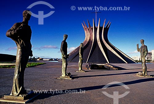 Subject: Sculpture The Four Evangelists and in the background Nossa Senhora Aparecida Metropolitan Cathedral / Place: Brasilia city - Federal District (FD) - Brazil / Date: 04/2008