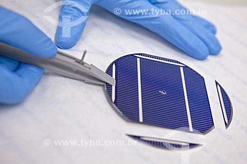 Subject: Scientist manipulating silicon blades during metallization process of its - Solar Cells Laboratory of Solar Technological Center of PUC-RS / Place: Porto Alegre city - Rio Grande do Sul state (RS) - Brazil