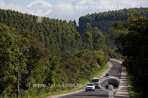 Subject: Highway BR-116 height of 347 KM with Pine plantation in the background / Place: Rio Grande do Sul state (RS) - Brazil / Date: 02/2012