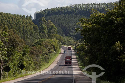 Subject: Highway BR-116 height of 347 KM with Pine plantation in the background / Place: Rio Grande do Sul state (RS) - Brazil / Date: 02/2012